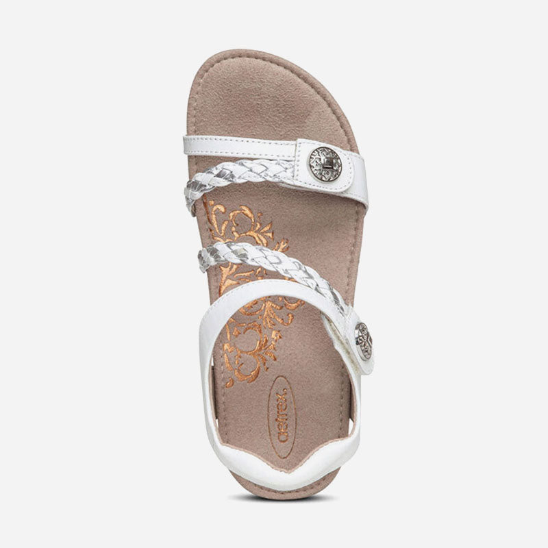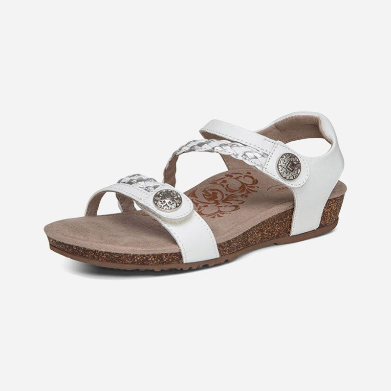 Our #1 best-selling sandal for a reason. The Jillian is constructed with Aetrex Signature Arch Support that is strategically placed to align your body. This fully adjustable sandal features memory foam cushioning, strategically placed straps to help relieve bunion discomfort, a padded heel for extra comfort, and an ultra-light cork midsole to help make it much easier to walk around all day. The signature braided detailing makes the Jillian both comfortable and stylish for all your summer adventures.