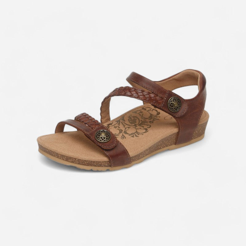 Our #1 best-selling sandal for a reason. The Jillian is constructed with Aetrex Signature Arch Support that is strategically placed to align your body. This fully adjustable sandal features memory foam cushioning, strategically placed straps to help relieve bunion discomfort, a padded heel for extra comfort, and an ultra-light cork midsole to help make it much easier to walk around all day. The signature braided detailing makes the Jillian both comfortable and stylish for all your summer adventures.