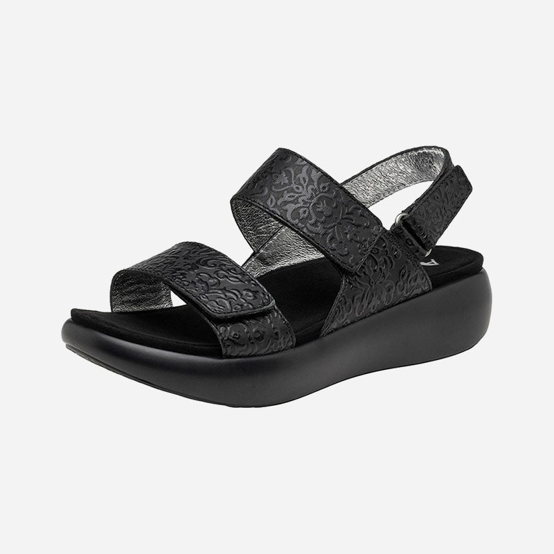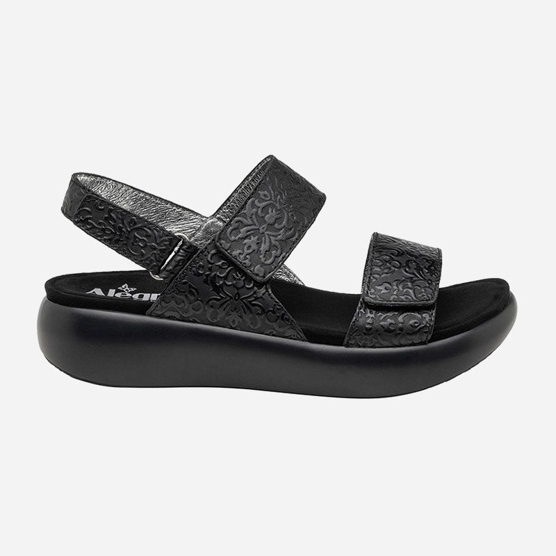 Elevate your footwear collection with the Alegria Bailee slingback sandal in Ink. This deep, versatile hue pairs effortlessly with your wardrobe while offering the unmatched comfort Alegria is known for. The soft, durable footbed wrapped in smooth microsuede cradles your foot in luxury, while the non-flexing, slip-resistant rocker bottom alleviates pressure on problem areas. Designed with a premium leather upper and lining, and three adjustable hook-and-loop closures, the Bailee Ink ensures a secure, personalized fit. Perfect for casual outings or long days on your feet, this sandal is a blend of style, comfort, and support.