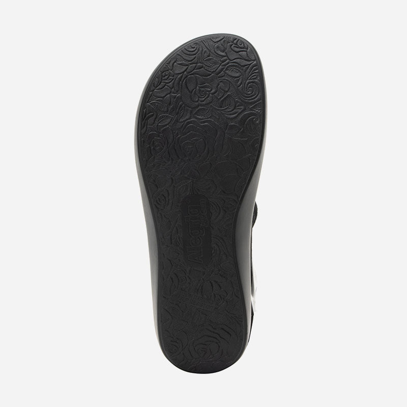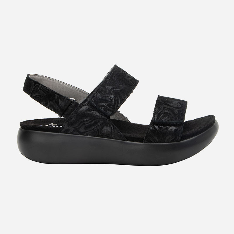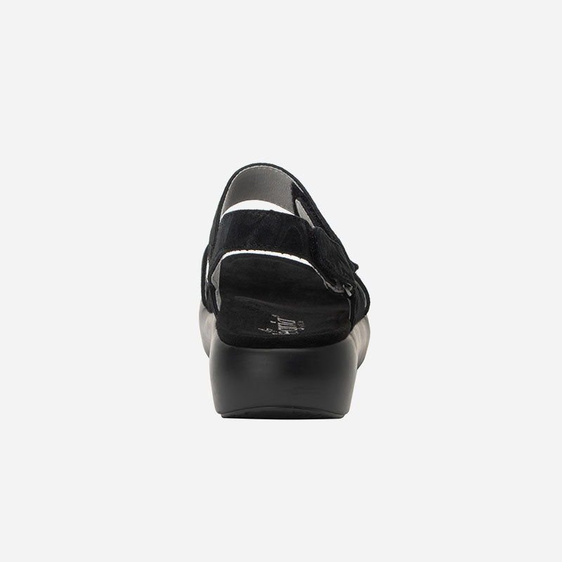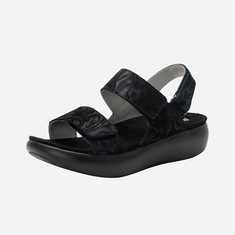 Elevate your footwear collection with the Alegria Bailee slingback sandal in Ink. This deep, versatile hue pairs effortlessly with your wardrobe while offering the unmatched comfort Alegria is known for. The soft, durable footbed wrapped in smooth microsuede cradles your foot in luxury, while the non-flexing, slip-resistant rocker bottom alleviates pressure on problem areas. Designed with a premium leather upper and lining, and three adjustable hook-and-loop closures, the Bailee Ink ensures a secure, personalized fit. Perfect for casual outings or long days on your feet, this sandal is a blend of style, comfort, and support.