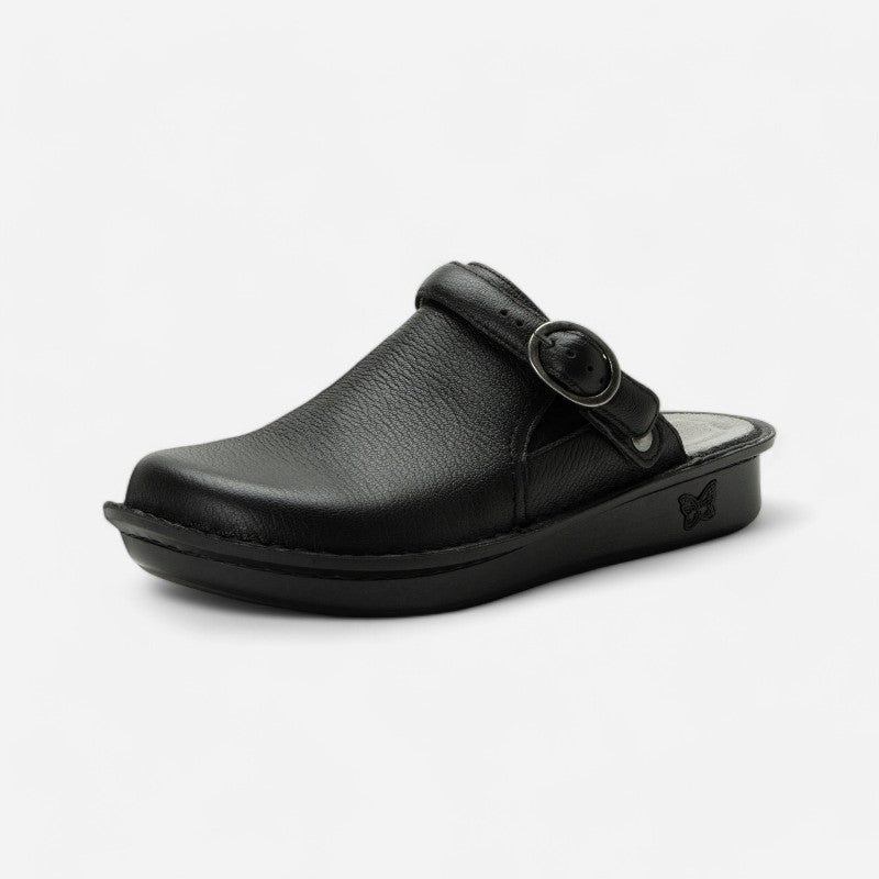 Relive the 60's in this Bryn, a classic handstitched leather clog that seamlessly incorporates a swivel strap taking it from a backless to slingback style. For walking ease, it incorporates a removable contoured footbed set into a walkable mini outsole.
