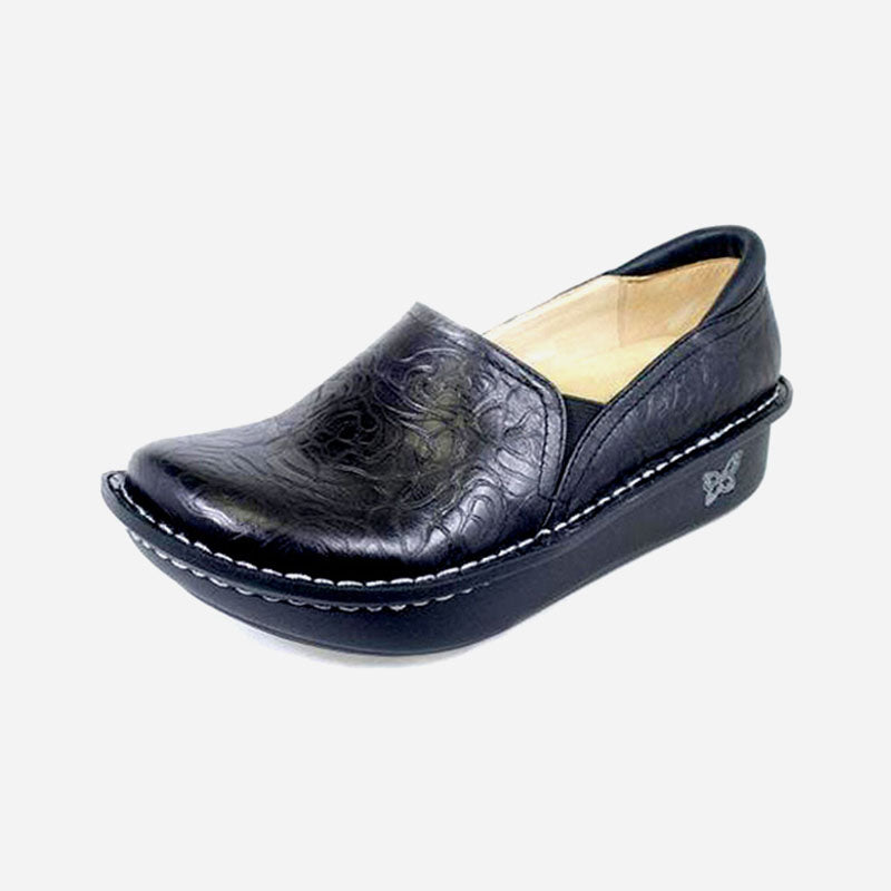Slip on the Debra with ease| this closed-heel slip on clog style is designed to fit you perfectly. Featured in an Embossible Tawny embossed design on genuine leather upper| with double elastic gores for easy slip on and off.