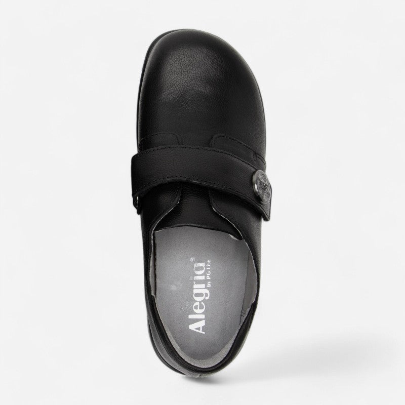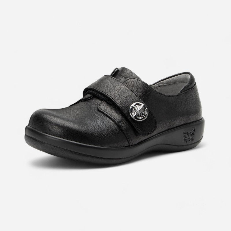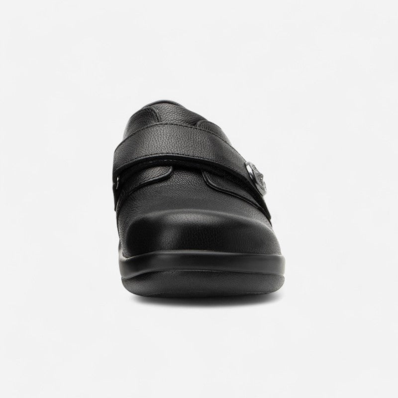 This full coverage weekday-to-weekend casual shoe features a stain-resistant leather upper for added performance and a hook-and-loop close strap for security. This style shown in an Upgrade Black genuine leather upper with unique strap ornamentation.