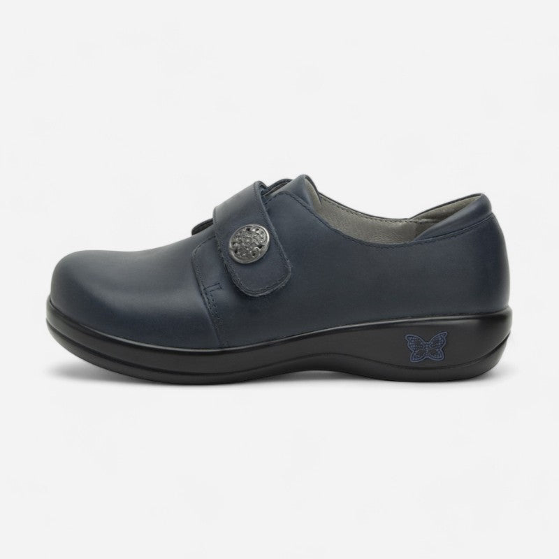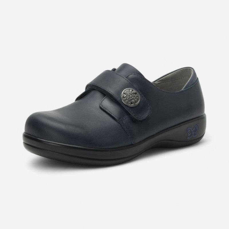 This full coverage weekday-to-weekend casual shoe features a stain-resistant leather upper for added performance and a hook-and-loop close strap for security. This style shown in an Upgrade Black genuine leather upper with unique strap ornamentation.