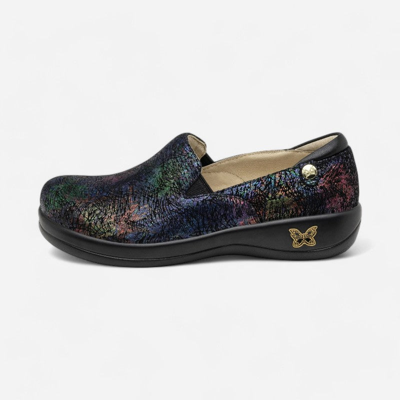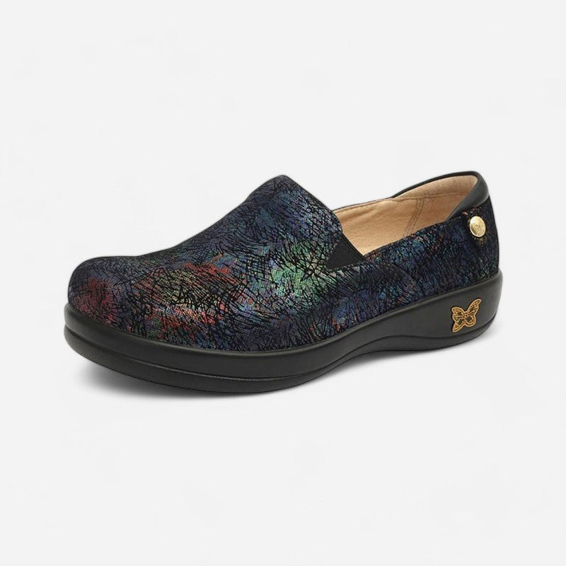 Slip-ons are today's wardrobe warriors, like this leather style with elastic side gores and gentle padding at the instep and collar. The rounded toe and removable ergonomic footbed made of memory foam and cork enhance the comfort, while the slip-resistant career casual outsole offers all-day support.
