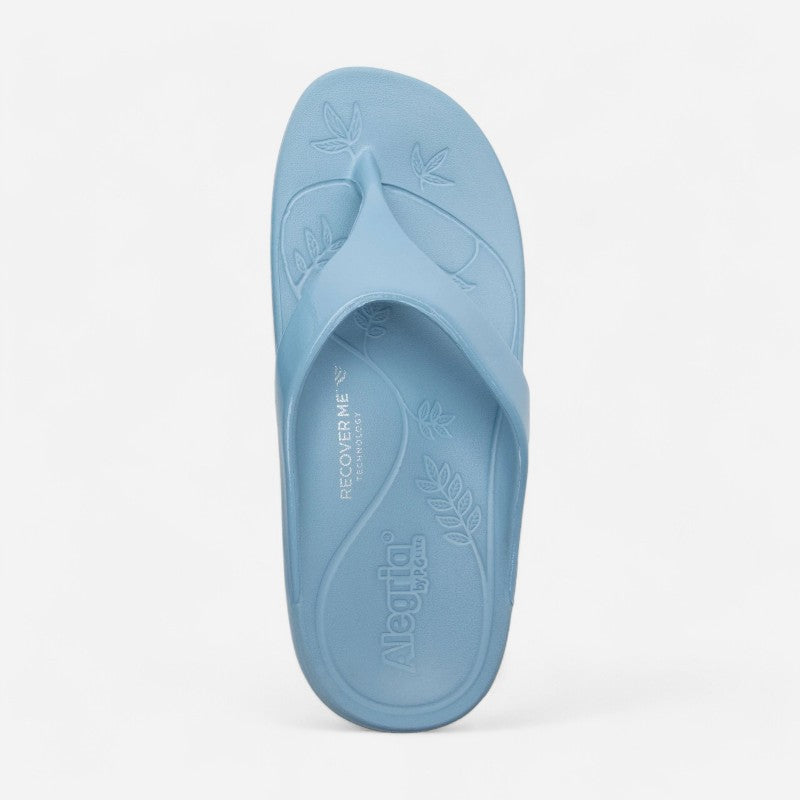 Step into Alegrias lightweight recovery flip-flop, your go to style for everyday comfort and port-workout support. Featuring RecoverMe⢠technology, the Ode sandal sits on a soft rocker bottom that is ergonomically designed to the contours of the foot. Available in a fresh range of colors and prints that will make your feet happy indoors or outdoors.