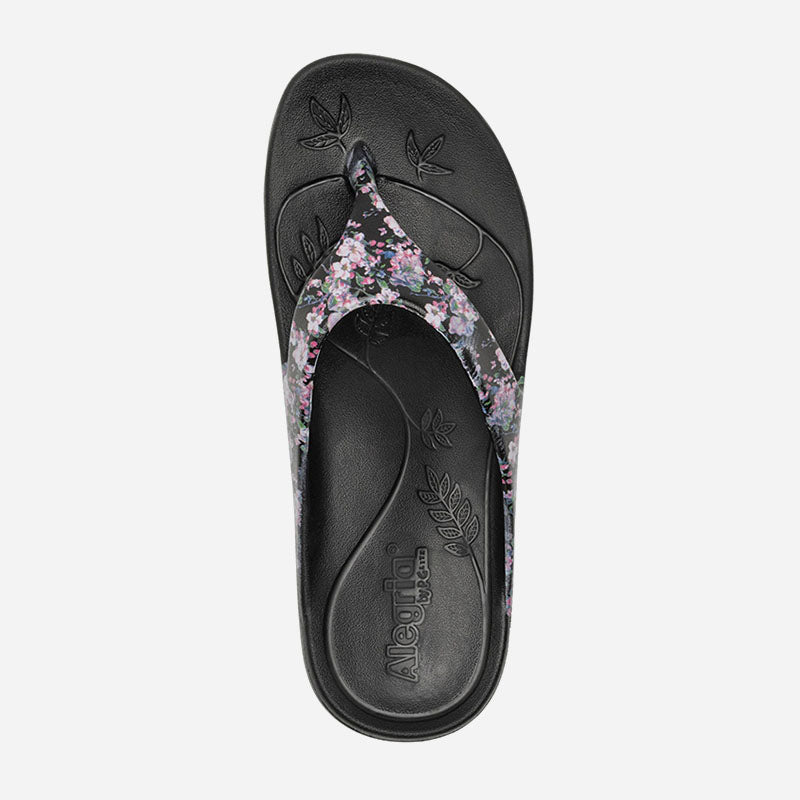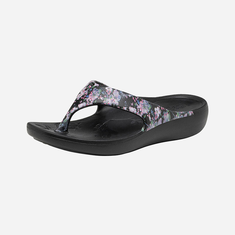 Step into Alegrias lightweight recovery flip-flop, your go to style for everyday comfort and port-workout support. Featuring RecoverMe⢠technology, the Ode sandal sits on a soft rocker bottom that is ergonomically designed to the contours of the foot. Available in a fresh range of colors and prints that will make your feet happy indoors or outdoors.