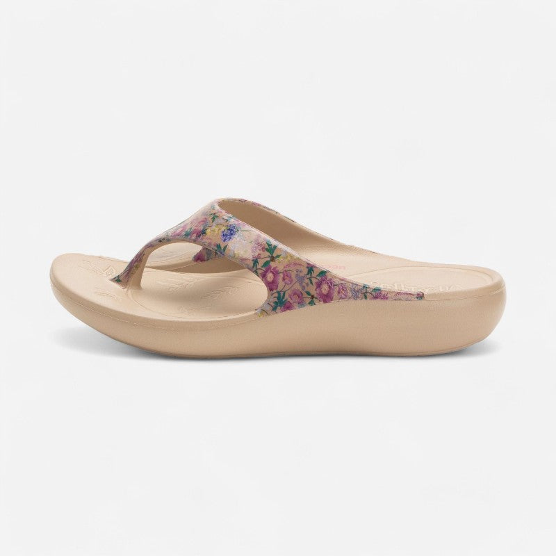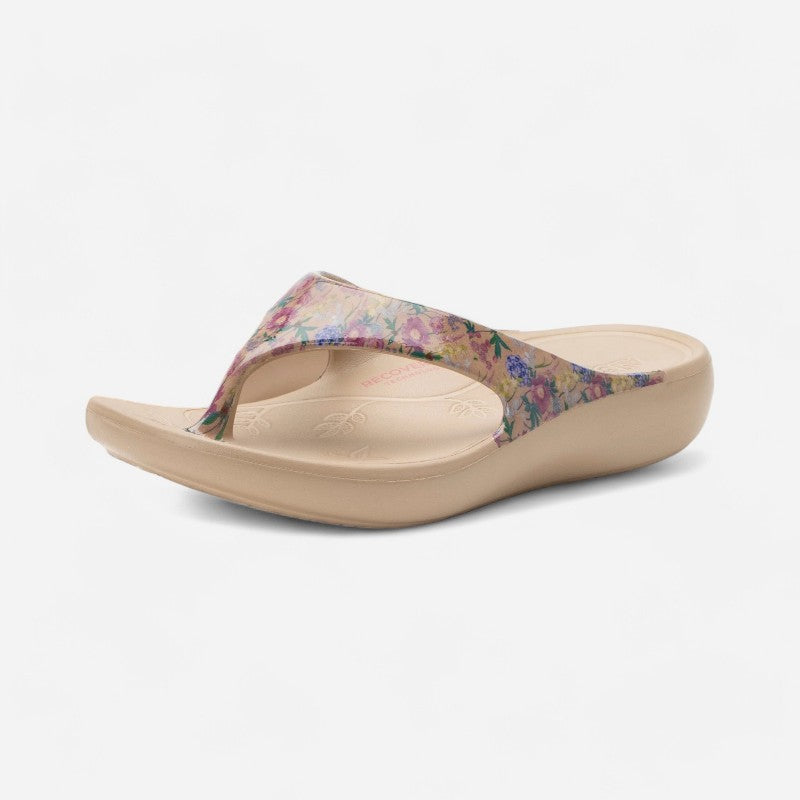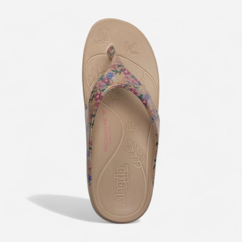 Step into Alegrias lightweight recovery flip-flop, your go to style for everyday comfort and port-workout support. Featuring RecoverMe⢠technology, the Ode sandal sits on a soft rocker bottom that is ergonomically designed to the contours of the foot. Available in a fresh range of colors and prints that will make your feet happy indoors or outdoors.