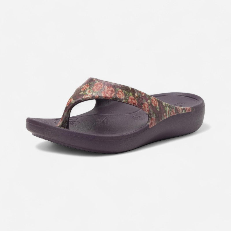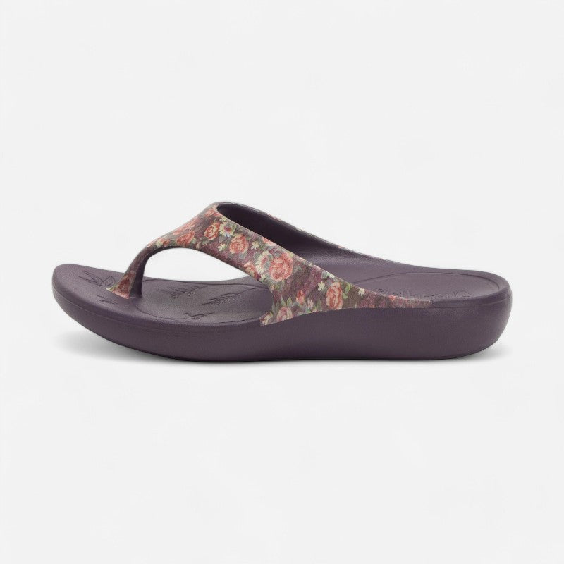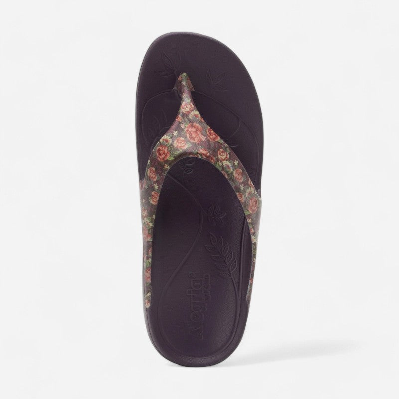 Step into Alegrias lightweight recovery flip-flop, your go to style for everyday comfort and port-workout support. Featuring RecoverMe⢠technology, the Ode sandal sits on a soft rocker bottom that is ergonomically designed to the contours of the foot. Available in a fresh range of colors and prints that will make your feet happy indoors or outdoors.
