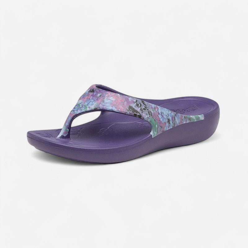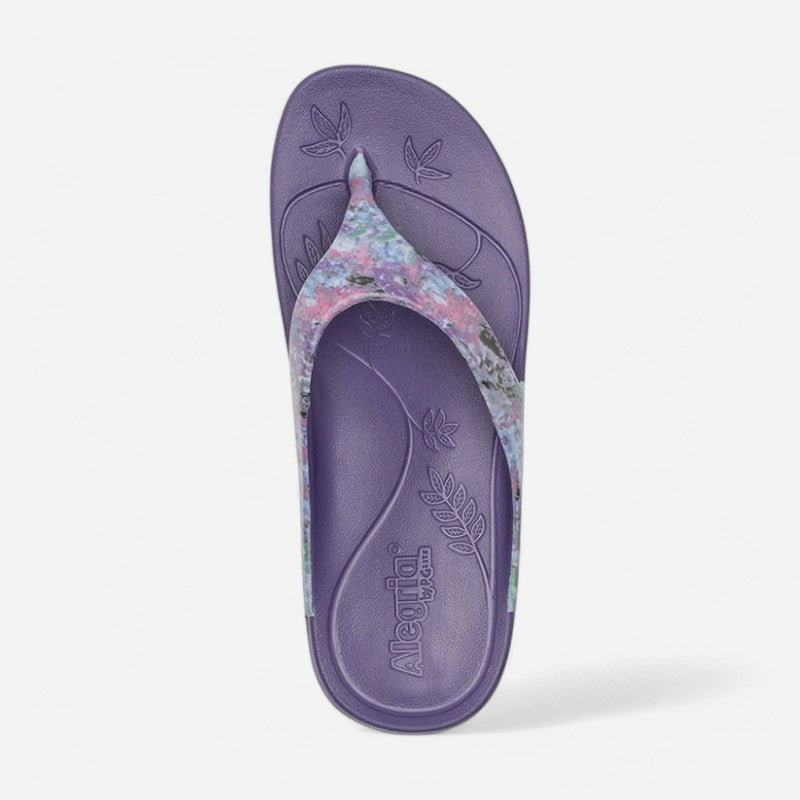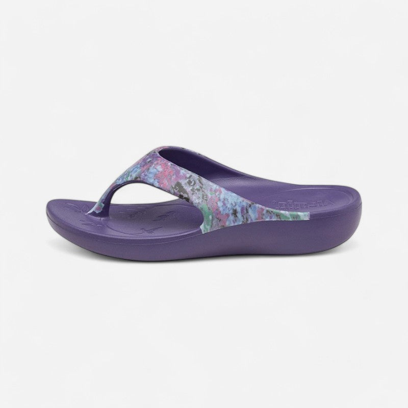 Step into Alegrias lightweight recovery flip-flop, your go to style for everyday comfort and port-workout support. Featuring RecoverMe⢠technology, the Ode sandal sits on a soft rocker bottom that is ergonomically designed to the contours of the foot. Available in a fresh range of colors and prints that will make your feet happy indoors or outdoors.