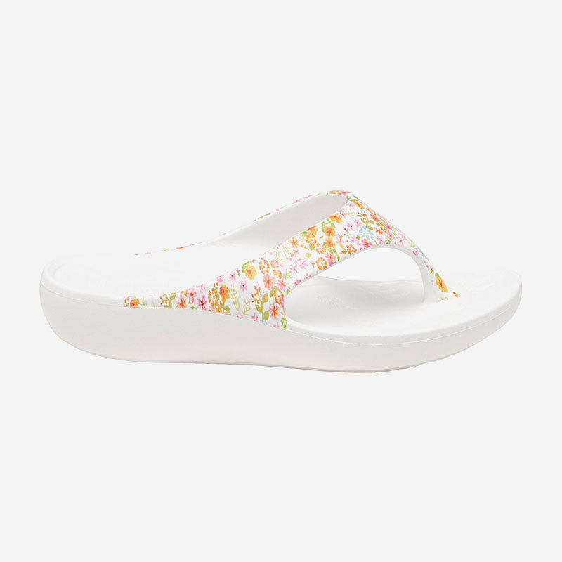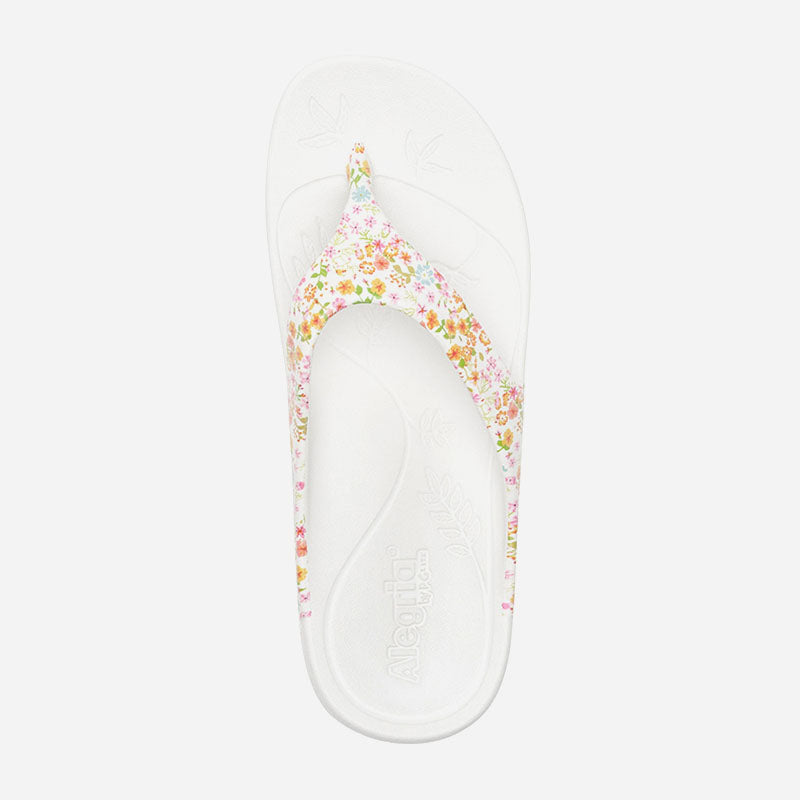 Step into Alegrias lightweight recovery flip-flop, your go to style for everyday comfort and port-workout support. Featuring RecoverMe⢠technology, the Ode sandal sits on a soft rocker bottom that is ergonomically designed to the contours of the foot. Available in a fresh range of colors and prints that will make your feet happy indoors or outdoors.