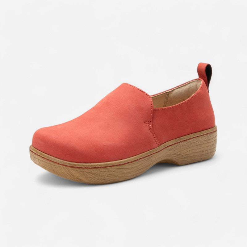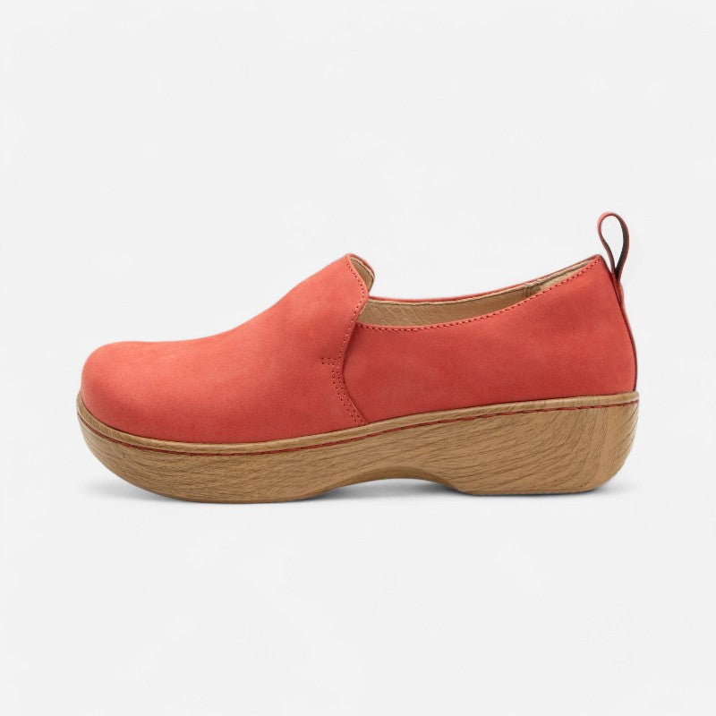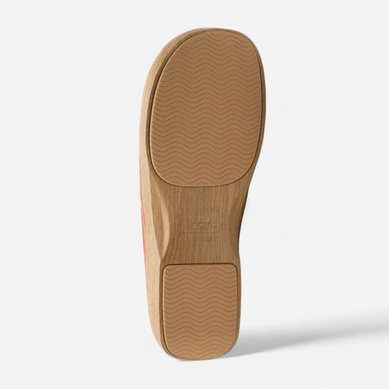 The Orygin combines casual charm and vibrant flare with a wood-look slip-resistant outsole and a variety of colorful uppers. Featuring a stain-resistant leather upper and an inside elastic across the vamp, this style will be your next everyday shoe. Underfoot, the durable microsuede removable footbed comprised of cork, polyurethane, and memory foam forms the contours of the foot for lasting support.