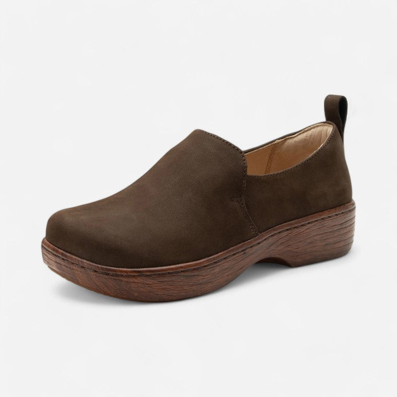 The Orygin combines casual charm and vibrant flare with a wood-look slip-resistant outsole and a variety of colorful uppers. Featuring a stain-resistant leather upper and an inside elastic across the vamp, this style will be your next everyday shoe. Underfoot, the durable microsuede removable footbed comprised of cork, polyurethane, and memory foam forms the contours of the foot for lasting support.
