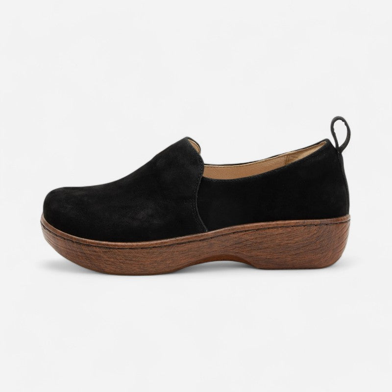 The Orygin combines casual charm and vibrant flare with a wood-look slip-resistant outsole and a variety of colorful uppers. Featuring a stain-resistant leather upper and an inside elastic across the vamp, this style will be your next everyday shoe. Underfoot, the durable microsuede removable footbed comprised of cork, polyurethane, and memory foam forms the contours of the foot for lasting support.
