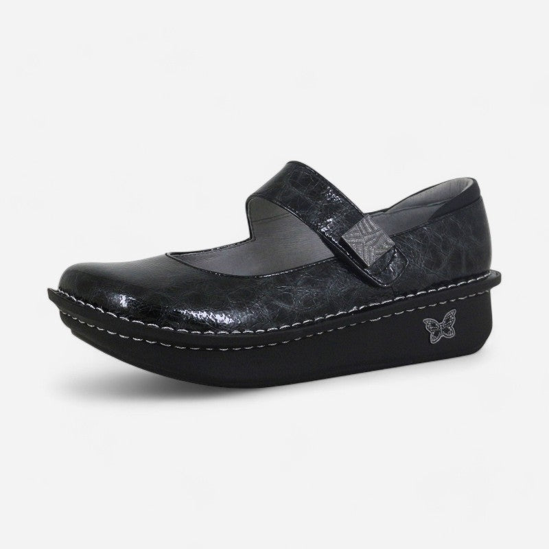 Our popular Mary Jane features an adjustable hook-and-loop close strap, each adorned with its own unique ornament. For added comfort and support, it incorporates an ergonomically designed memory foam and cork footbed that's easily removable with a classic rocker outsole that creates a natural rolling motion when walking.
