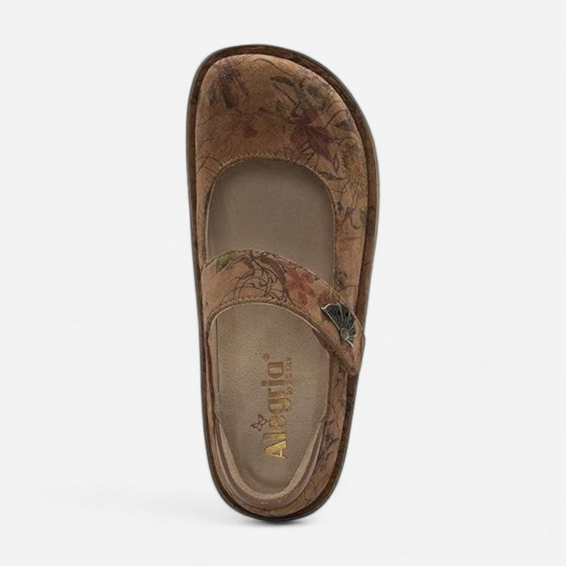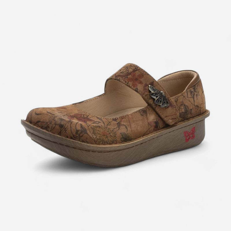 Our popular Mary Jane features an adjustable hook-and-loop close strap, each adorned with its own unique ornament. For added comfort and support, it incorporates an ergonomically designed memory foam and cork footbed that's easily removable with a classic rocker outsole that creates a natural rolling motion when walking.