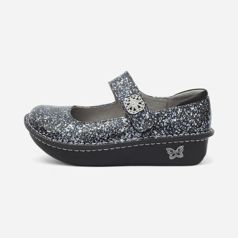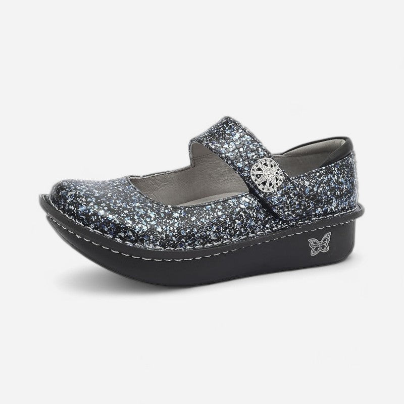 Our popular Mary Jane features an adjustable hook-and-loop close strap, each adorned with its own unique ornament. For added comfort and support, it incorporates an ergonomically designed memory foam and cork footbed that's easily removable with a classic rocker outsole that creates a natural rolling motion when walking.