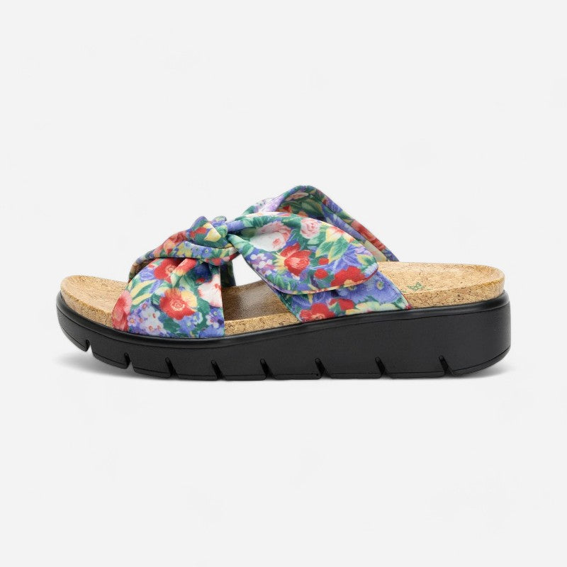 This knotted slide incorporates a hidden hook-and-loop closure for a personalized fit. The feminine upper is juxtaposed against a lightweight heritage outsole that supports a contoured footbed.