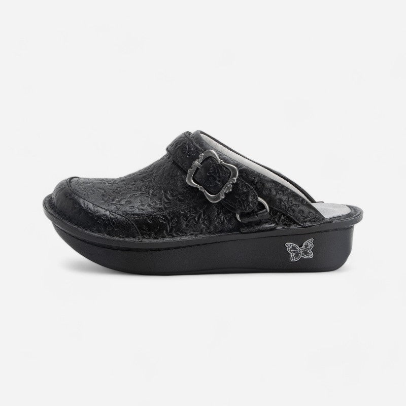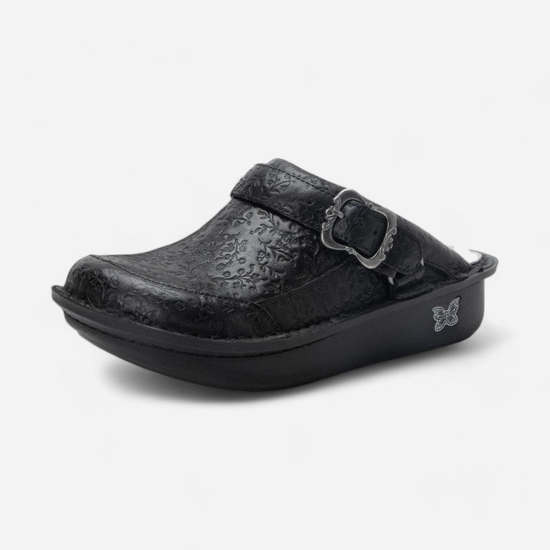 It's a snap to transform this Seville leather clog into a second look by simply swiveling the buckle strap, instantly taking it from a slip-on to a sling-back style. Inside, there's an ergonomically designed removable footbed made of memory foam and cork for enhanced comfort underfoot and a slip-resistant classic rocker outsole for walking ease.