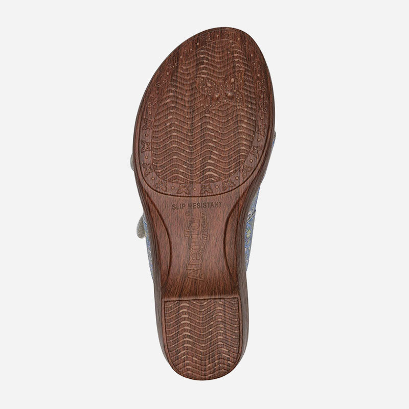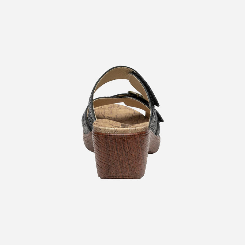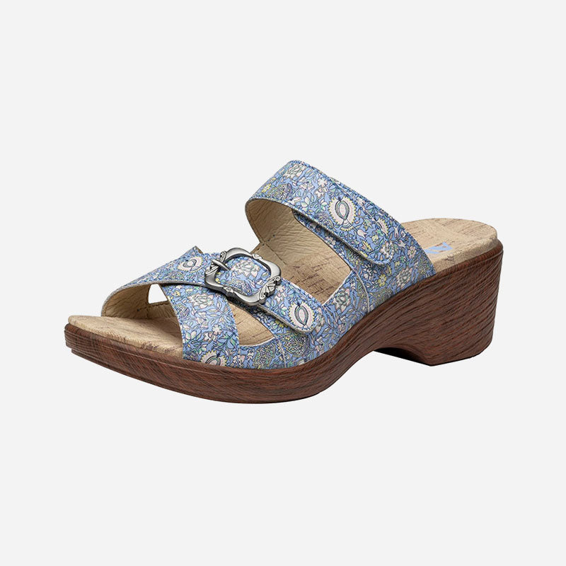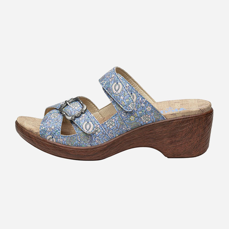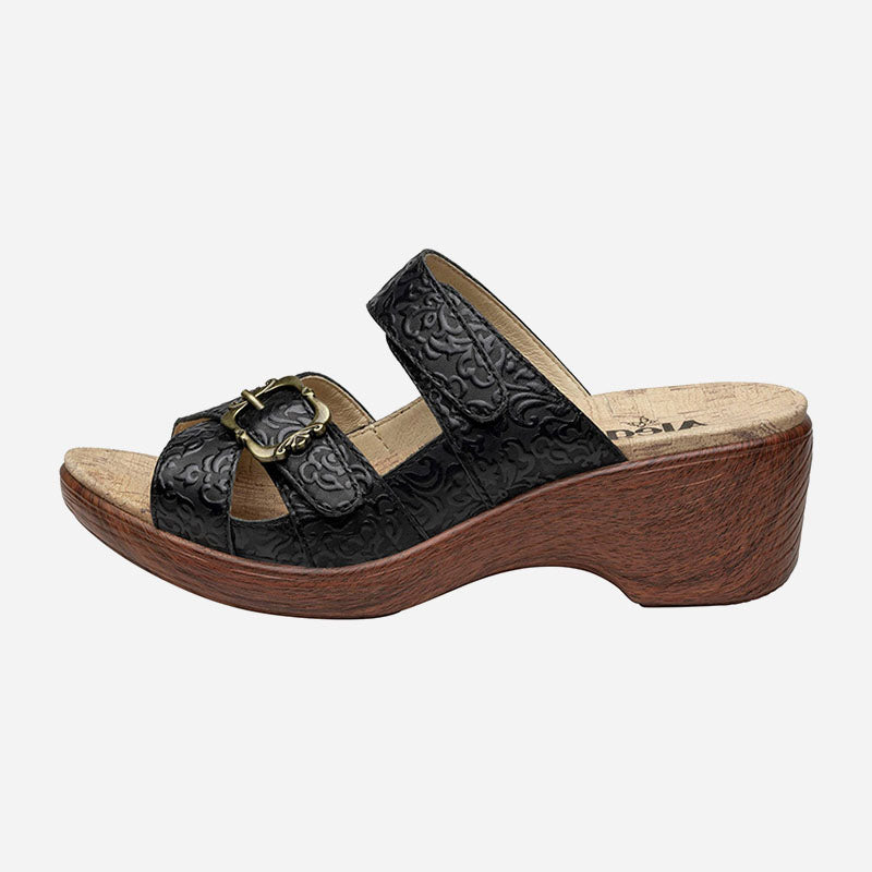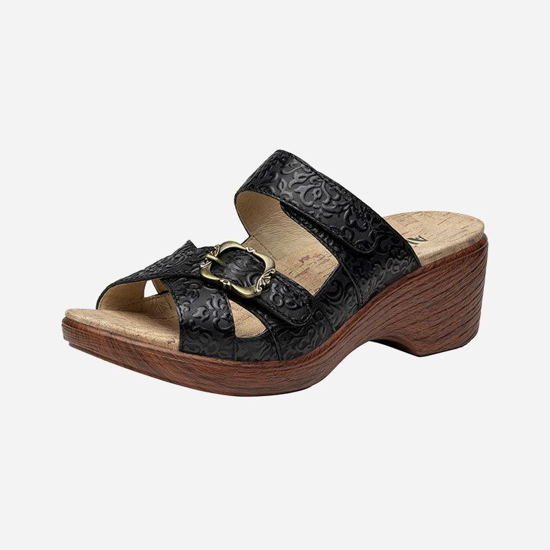 Adjustability is taken beyond the limits in this '40's-inspired leather sandal on a slip-resistant lightweight wood look wedge. For some added femininity, there's an adjustable crisscross strap detailed with an ornate buckle. Step inside and the comfort continues with a cushioned footbed lined with soft microsuede.