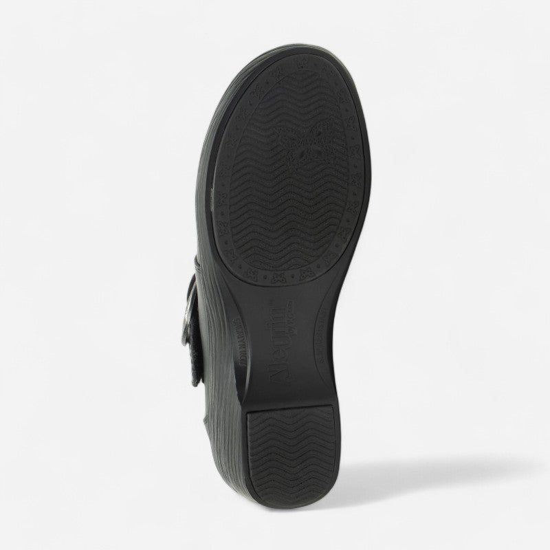 - Adjustable hook-and-loop strap with ornamental buckle.