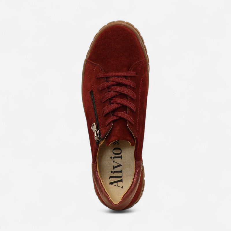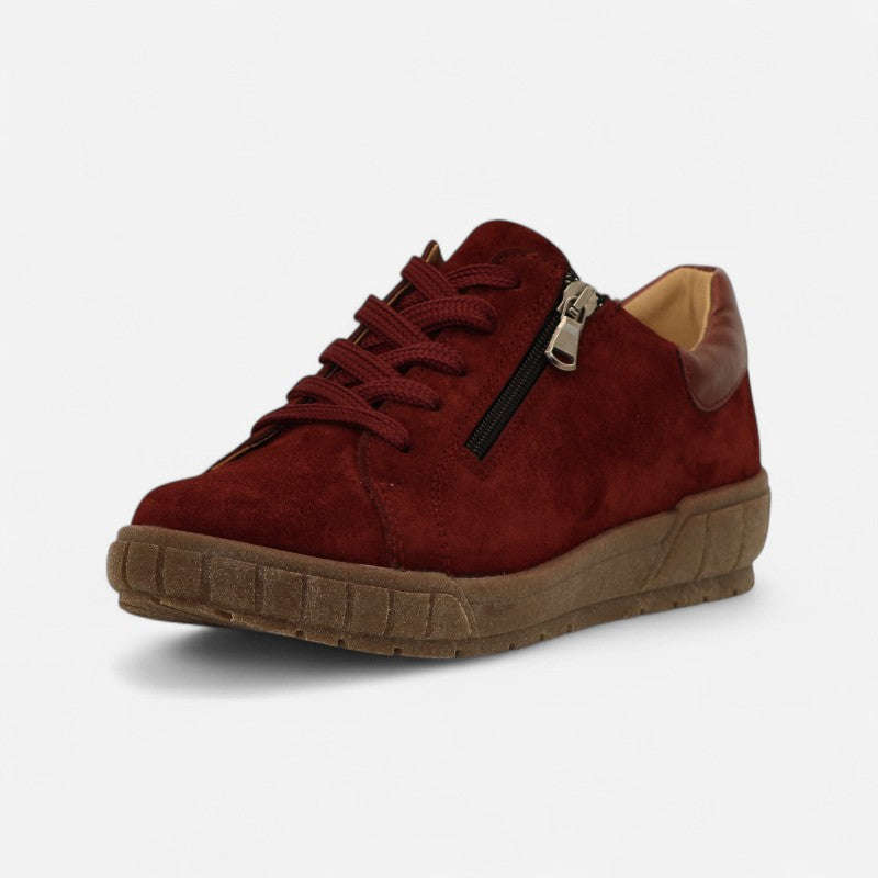 A buttery-soft and fashionable leather/suede sneaker with the easy on/off of a side zipper.