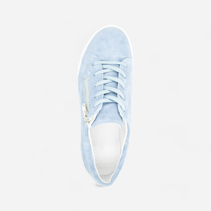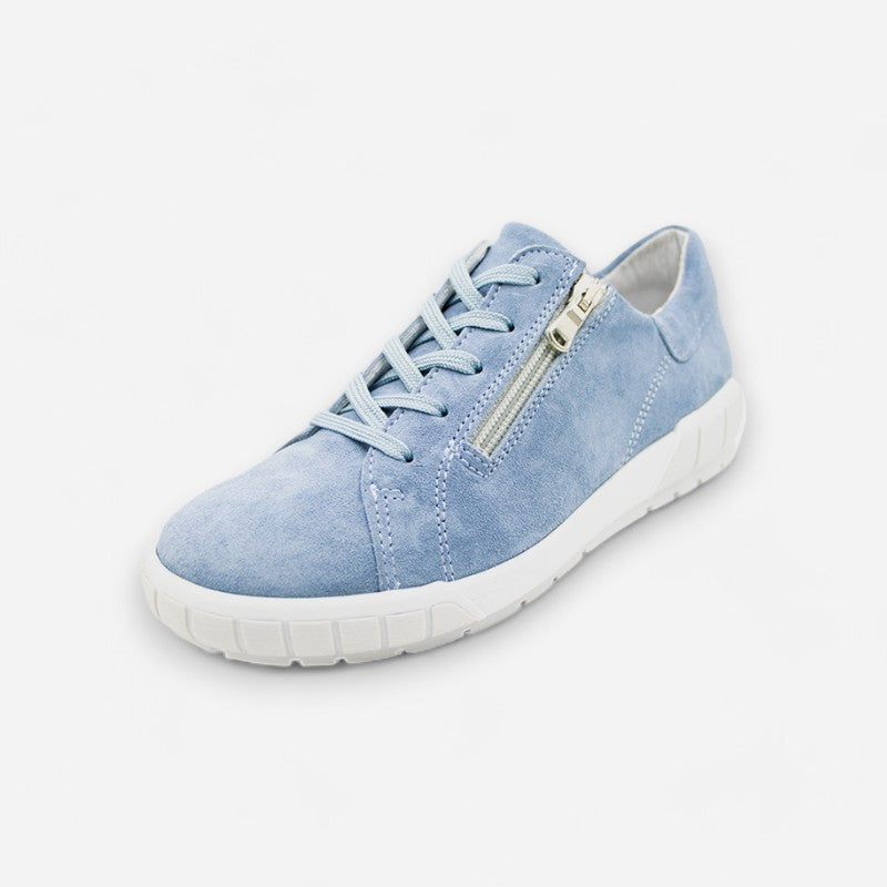 A buttery-soft and fashionable leather/suede sneaker with the easy on/off of a side zipper.