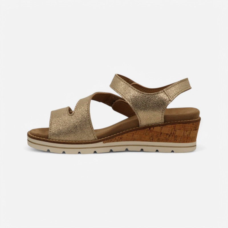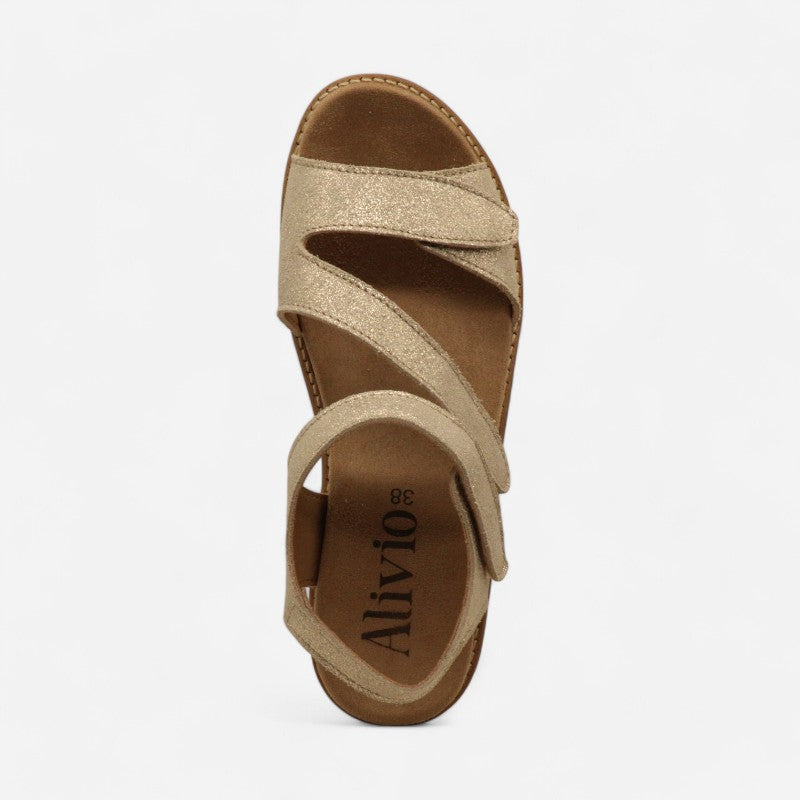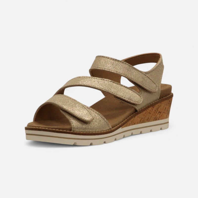 A flattering wedge heel meets secure comfort in this three-strap style, favored by any foot type seeking cushioned adjustability.
