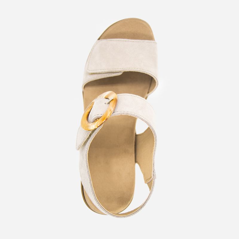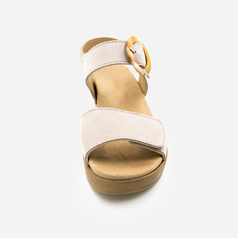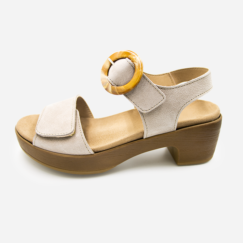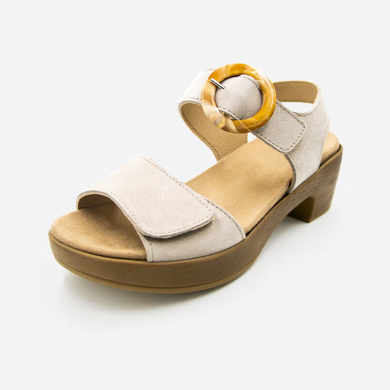 A charming retro silhouette and decorative tortoise-patterned buckle round out the styling possibilties of this lovely wedge sandal, while sumptuous cushioning adds all-day comfort! Other thoughtfully designed features include an anatomical, removal/hand-washable footbed and double hook-and-loop closures for optimal adjustability.