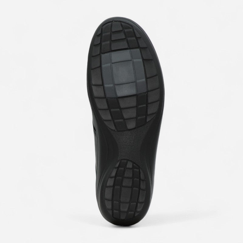 - Reinforced arch made from environmentally friendly compressed felt offers flexible support and improved weight distribution for a variety of foot types