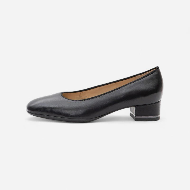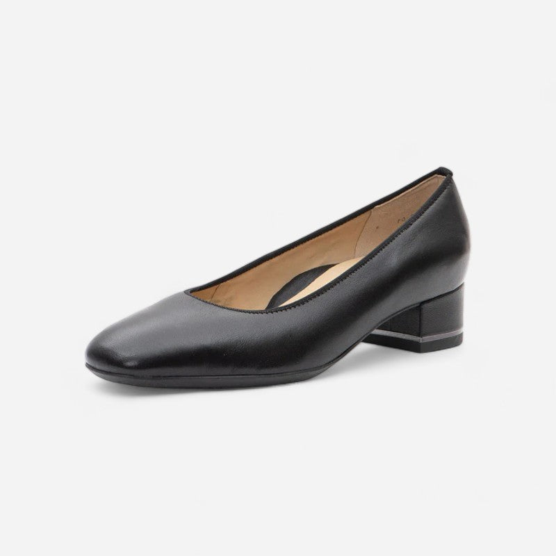 The Ara Gabrielle presents a sophisticated option for women seeking a high-heeled pump crafted from premium leather| featuring an elasticized topline for enhanced comfort.