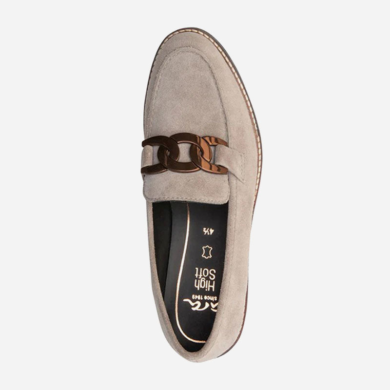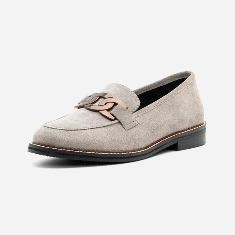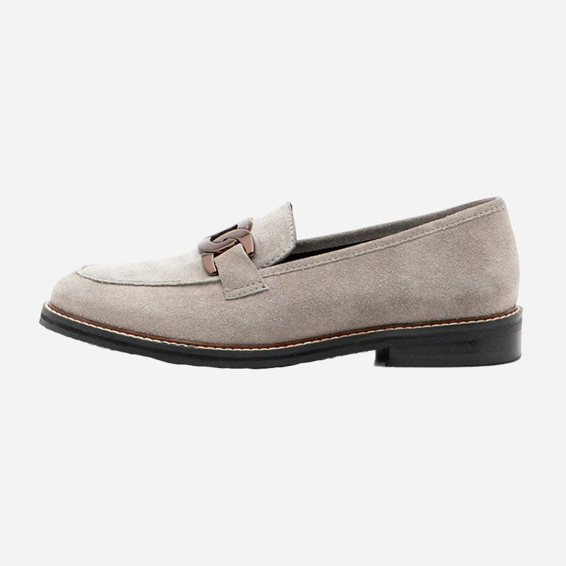 This classic and chic loafer is a must have for any wardrobe. The suede & leather uppers compliment any ensemble. The chain detail is elegant and fashionable.