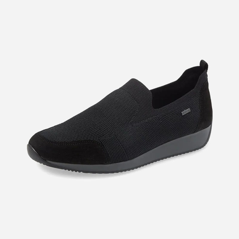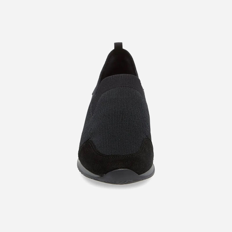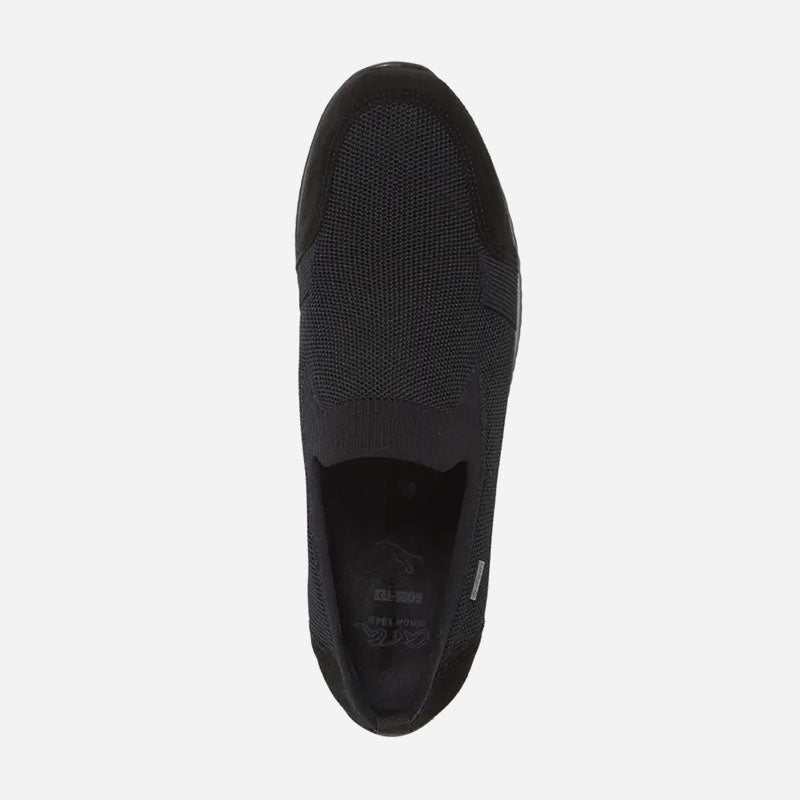 A stretchy knit upper intensifies the sporty style of a slip-on sneaker designed for everyday comfort.