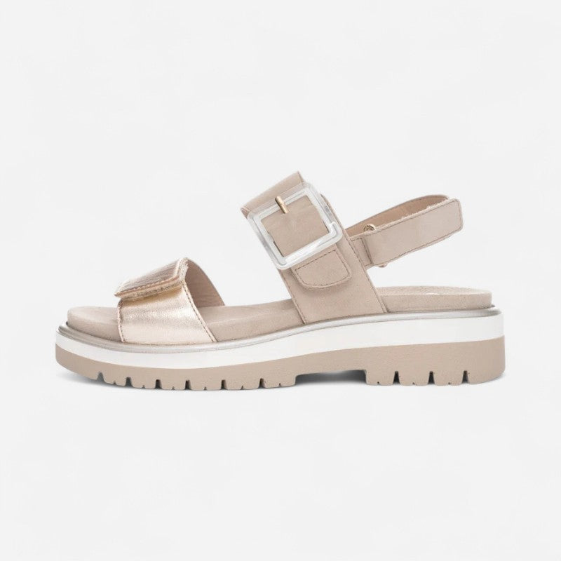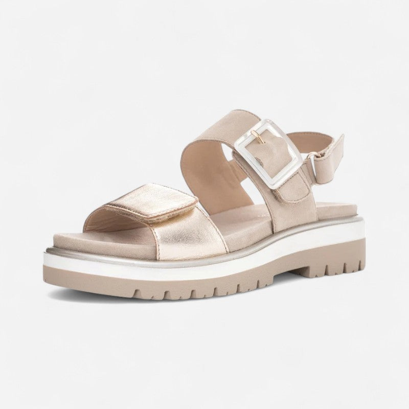 Experience all-day comfort and support with the innovative HighSoft cushioning technology embedded within this supple suede sandal. Crafted with flexibility in mind| its design features adjustable hook-and-loop straps for a personalized fit. The combination of a leather upper and lining with a synthetic sole ensures both durability and style.