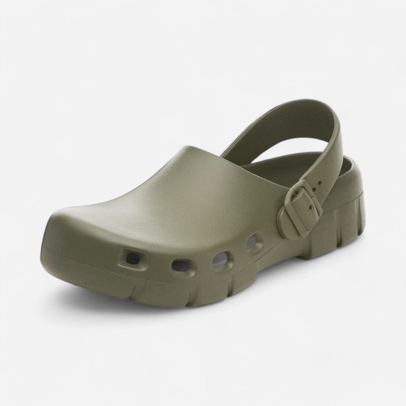 Introducing our first post-sport recovery clog, the all-new Birki Flow. Designed around the contours of our iconic footbed, the Birki Flow builds off our best-selling EVA clogs with an ultra-breathable, water-friendly style. Complete with classic BIRKENSTOCKĀ® design cues, from the adjustable backstrap to molded buckle.