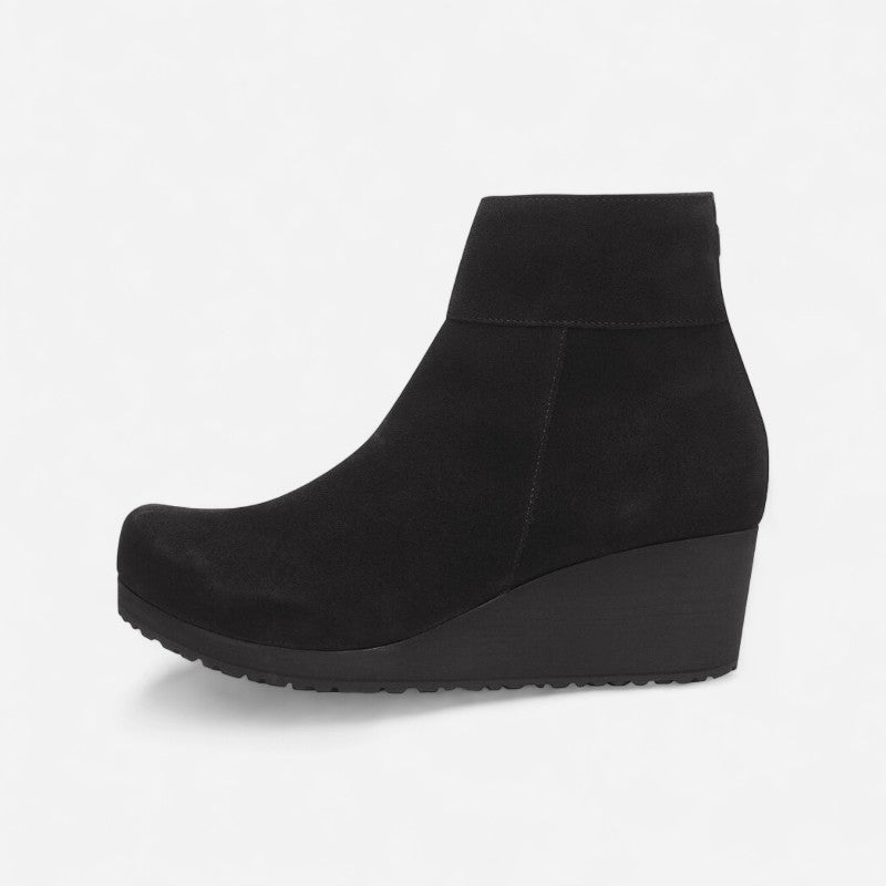 The Ebba ankle boot brings the contoured comforts of the BIRKENSTOCK footbed together with a cork wedge heel—all without adding pressure to the front of your foot. In smooth suede for a classic feel. Level up your style in comfort.