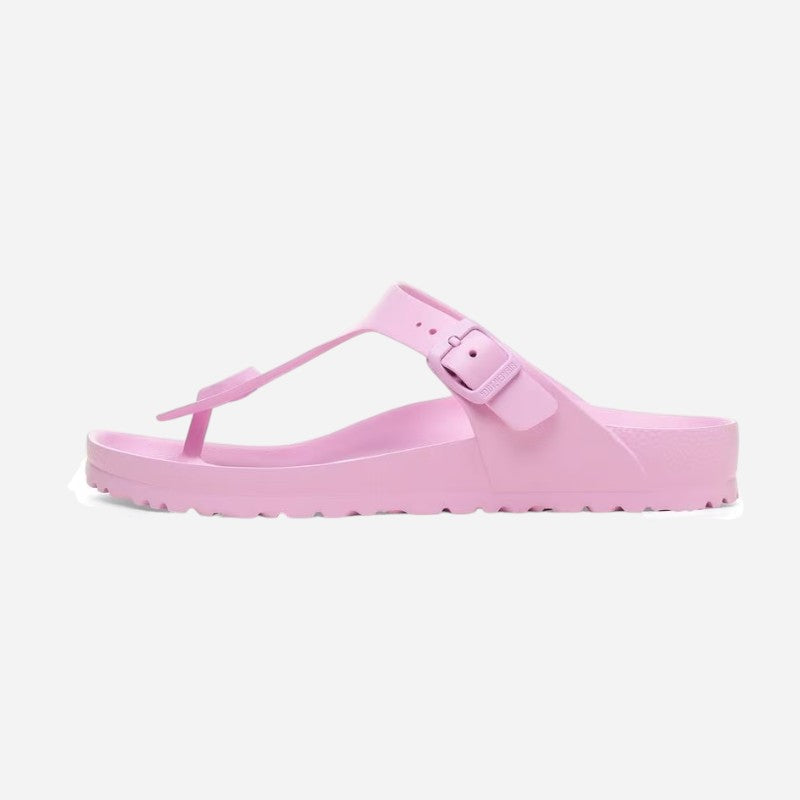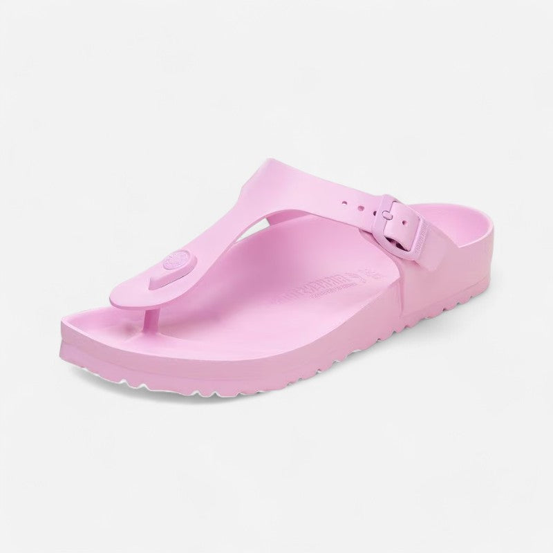 The BIRKENSTOCK Gizeh is a genuine classic. Modeled on the cork sandal, it is made from ultra light and highly flexible EVA. The high-quality, odor-neutral EVA has been tested for harmful substances and combines numerous positive attributes. It is ultra lightweight, highly elasticated, shock-absorbent, waterproof, skin-friendly – and offers the comfort you have come to expect from BIRKENSTOCK.