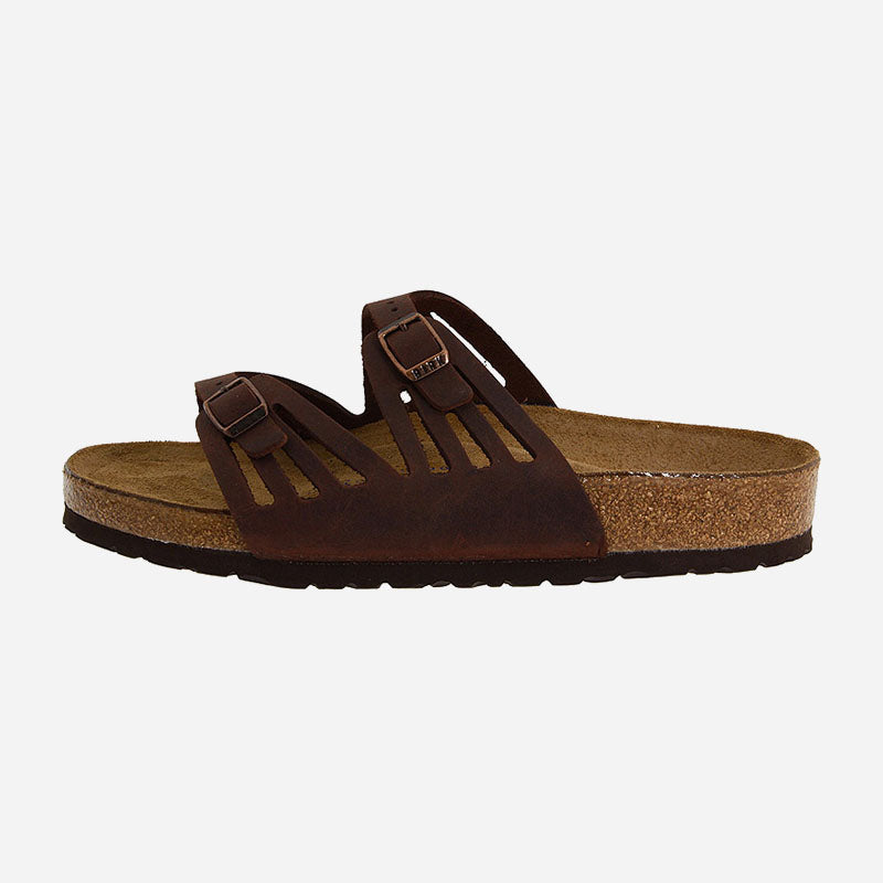 The BIRKENSTOCK Granada stands out with its natural look. It is characterized by its two perforated main straps. This is the perfect combination of femininity and function! With its additional foam layer, the soft footbed offers extra comfort and pampers feet – all day long. The upper is made from extra thick, oiled nubuck leather with an open-selvage finish.