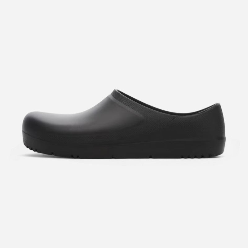 The Profi Birki 2.0 polyurethane clog is suitable for a variety of professional applications. With its raised heel section, this popular clog provides the feet with all-around protection and grip. The flexible PU material features a smooth surface which is not only oil- and grease-resistant, but also water- and dirt-repellent. The Profi Birki 2.0 is therefore suited in particular to use in kitchens and restaurants. BIRKENSTOCK sets high safety standards in terms of sole design: the directly foamed, flexible PU sole features a slightly deeper tread, thus ensuring a firm grip on many surfaces.