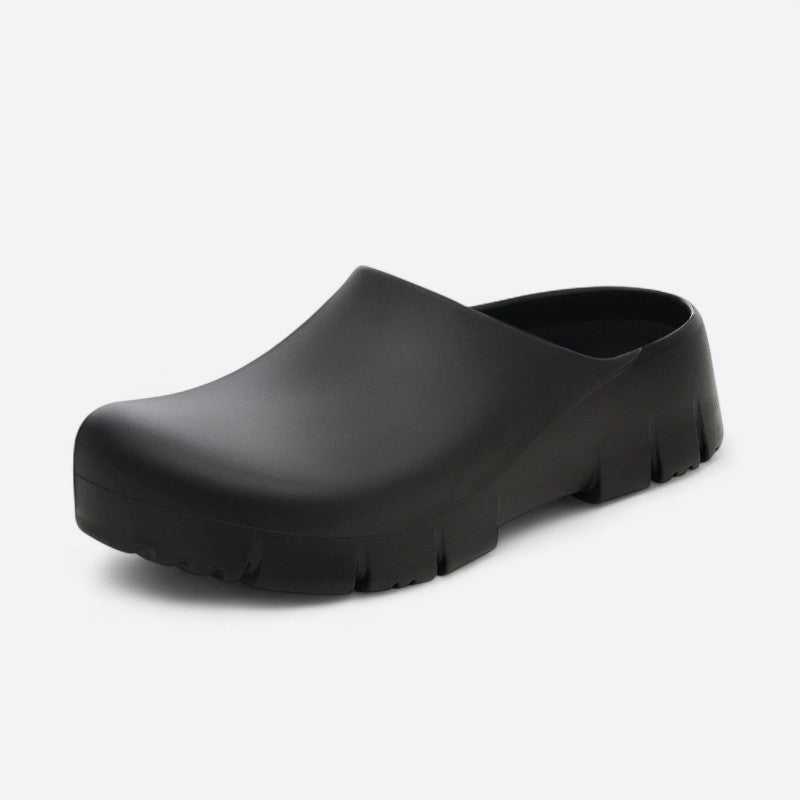 A highly versatile clog, the Super Birki 2.0 is suitable for use in leisure time, in the garden and at work. The popular, one-piece clog with the slightly flatter heel section protects the foot all around and gives it good support. The flexible PU material with the smooth surface is water and dirt repellent making it easy to clean. The ergonomically designed cork footbed covered with skin-friendly, breathable microfibre ensures a high level of comfort. This makes the Super Birki suitable for your own, individual insoles.