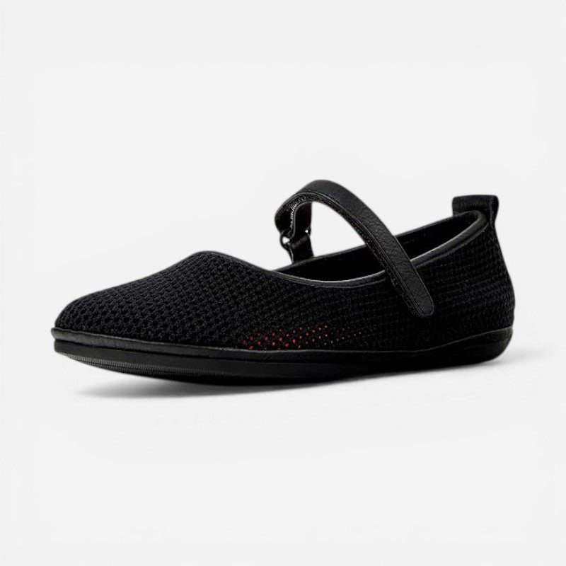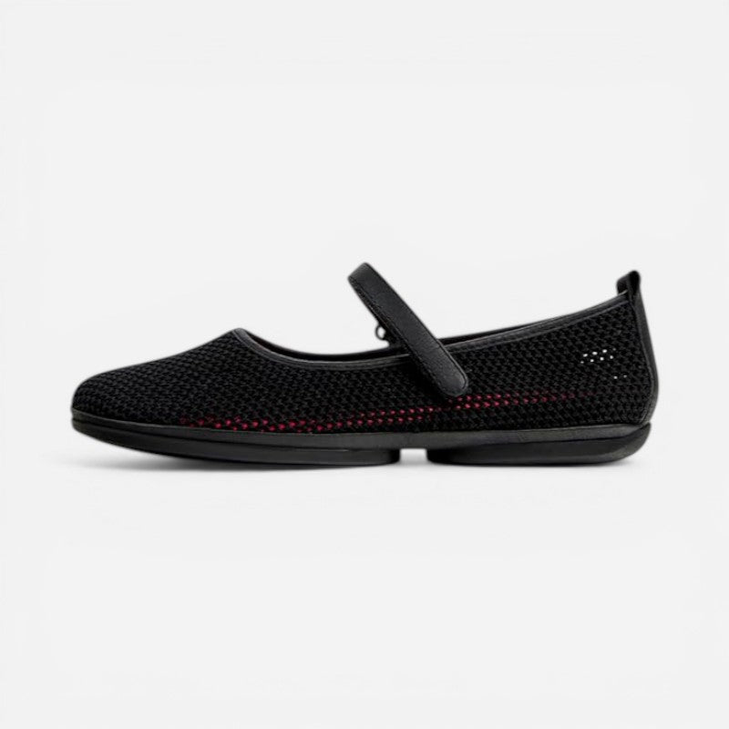 Black Tencel mesh and calfskin details ballerinas for women with removable EVA footbeds, hook-and-loop system and rubber outsoles (20% recycled).