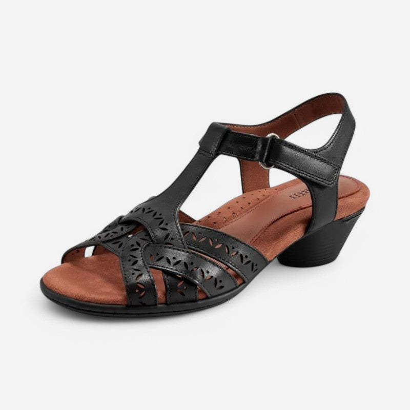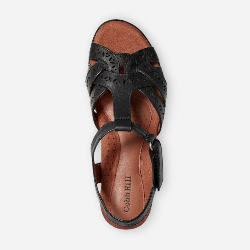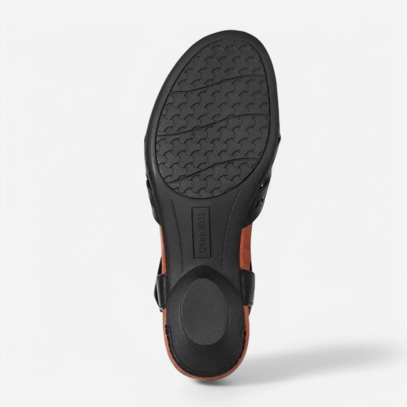 Crafted from sumptuous burnished leather, an airy, versatile sandal features delicate contrast stitching, pretty woven straps and an adjustable buckle closure for a custom fit.