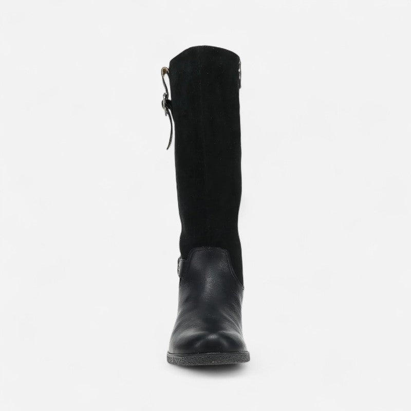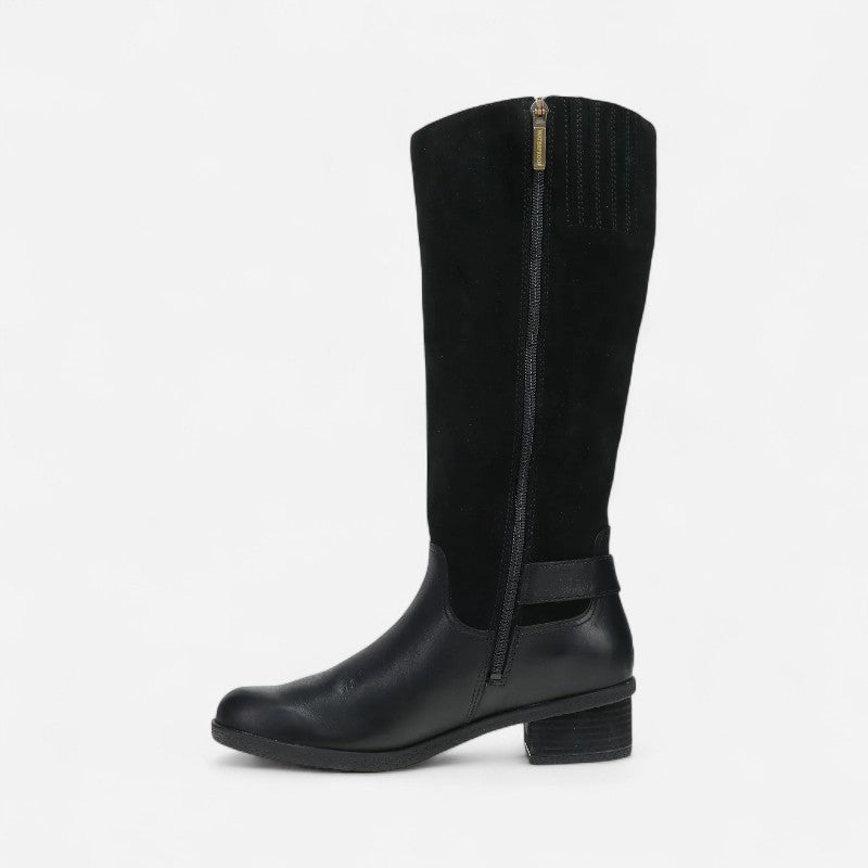 Show off your style with Dawn, a tall-shaft boot with a full inside zipper for easy entry, crafted from waterproof leather to withstand the elements. Featuring luxurious suede treated with 3M Scotchgardâ„¢ and equestrian-inspired hardware, this boot combines fashion and function with waterproof construction.