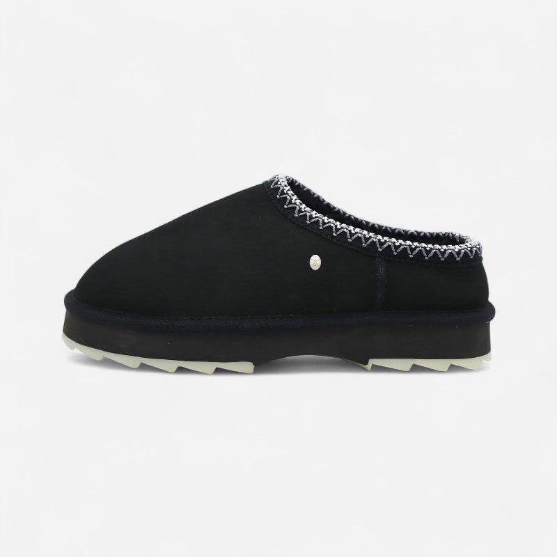- The Sharky Scuff features a distinctive serrated sole and is fully lined with premium Australian sheepskin