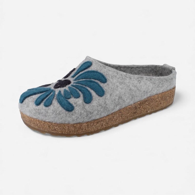 Enjoy the nature inspired style and premium comfort of the Haflinger Blooming clog. The upper features 100% pure wool felt which allows for breathability and durability. Your feet will feel cozy and comfortable in a natural material that keeps the temperature constant whether for indoor or outdoor wear.