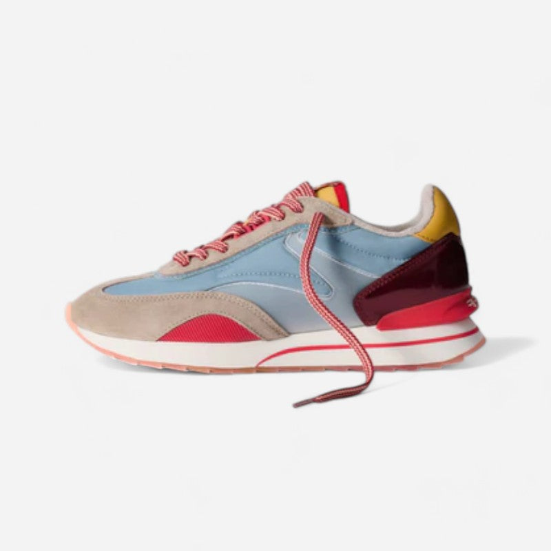 Art and fashion merge in the ART X ABBEY LOSSING collection. These sneakers reflect the illustrator's inspiration, combining her love of color, patterns and figures. PEONY combines materials such as suede, leather, fabric and rubber details. The play of colors, such as satin blue, mouse gray in contrast with wine red and mustard, makes them a piece of art in themselves.