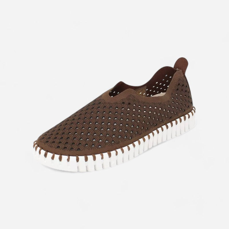 Ilse Jacobsen Tulip 139Â is a lightweight and comfortable slip-on shoe. Prominent features include perforated recycled microfiber uppers, a removable insole and a sturdy and chunky outsole.