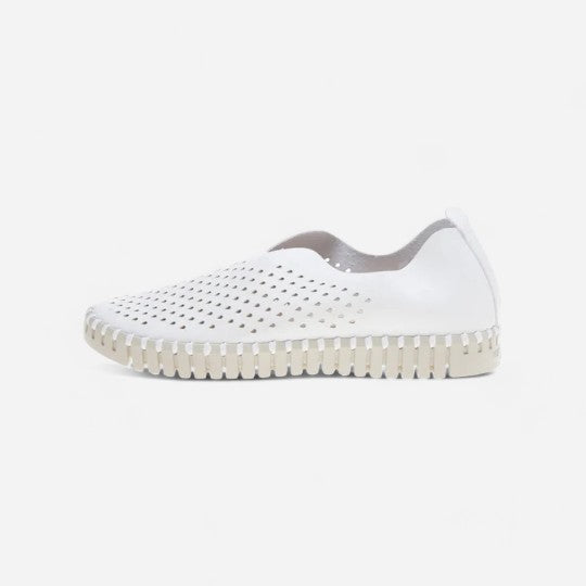 Ilse Jacobsen Tulip 139Â is a lightweight and comfortable slip-on shoe. Prominent features include perforated recycled microfiber uppers, a removable insole and a sturdy and chunky outsole.