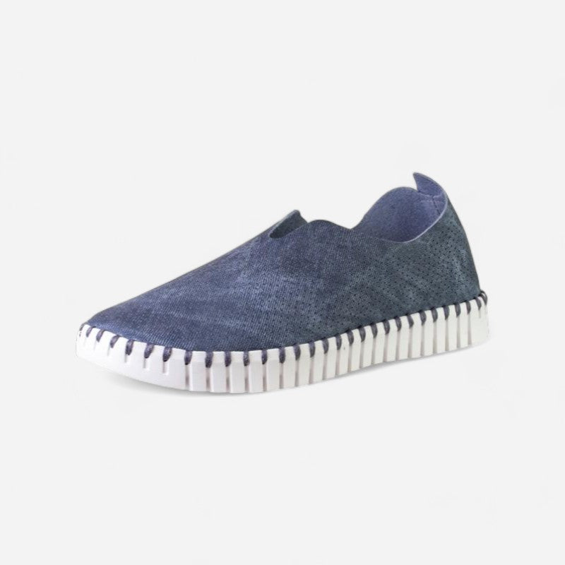 Ilse Jacobsen Tulip 139Â is a lightweight and comfortable slip-on shoe. Prominent features include perforated recycled microfiber uppers, a removable insole and a sturdy and chunky outsole.
