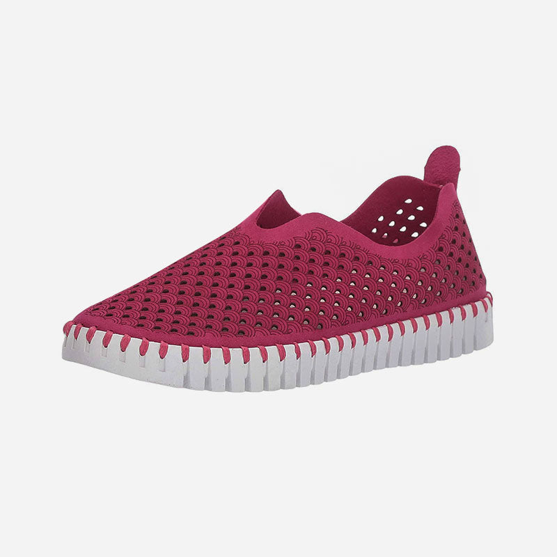 Ilse Jacobsen Tulip 139Â is a lightweight and comfortable slip-on shoe. Prominent features include perforated recycled microfiber uppers, a removable insole and a sturdy and chunky outsole.